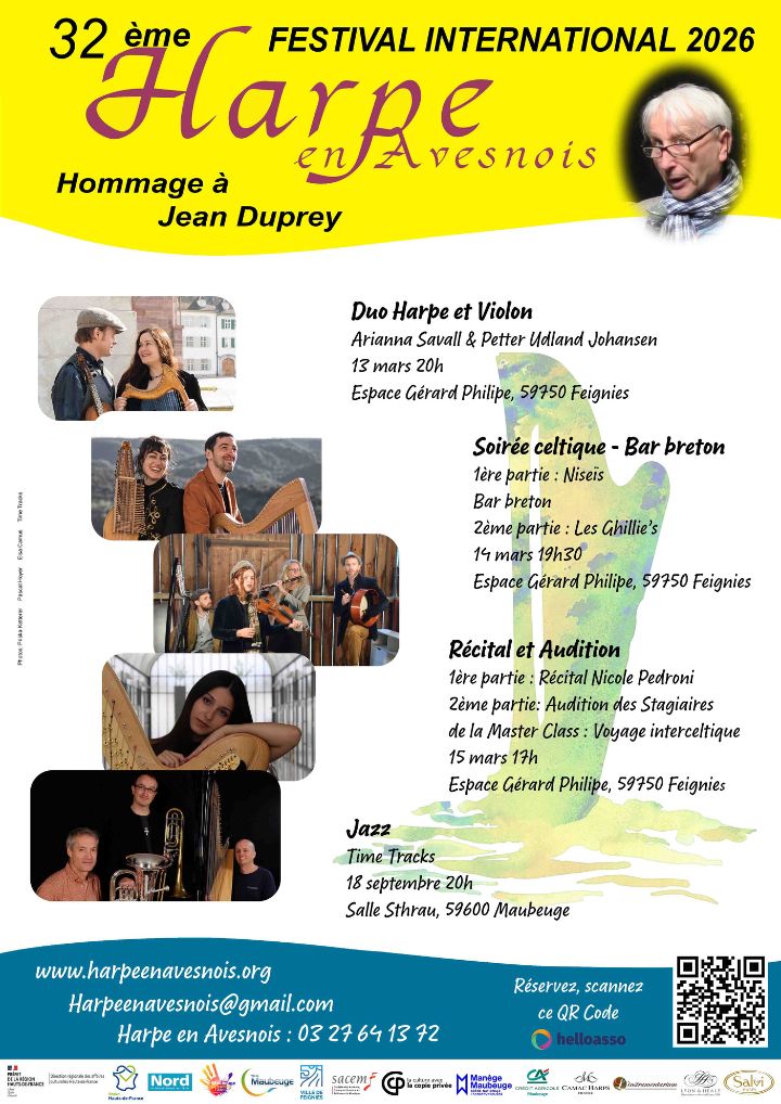 L’association Harpe en Avesnois organise le 32ᵉ Festival international de harpe en Avesnois, du 13 au 15 mars, à l’Espace Gérard Philipe de Feignies. Cette édition sera marquée par un hommage à Jean Duprey, président et fondateur de l’association, décédé en janvier 2025.