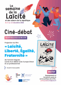 - Projection du film “Laïcité, Liberté, Égalité, Fraternité” réalisé par Yannick Séguier, le mardi 9 décembre de 18h à 21h au Ociné de Maubeuge