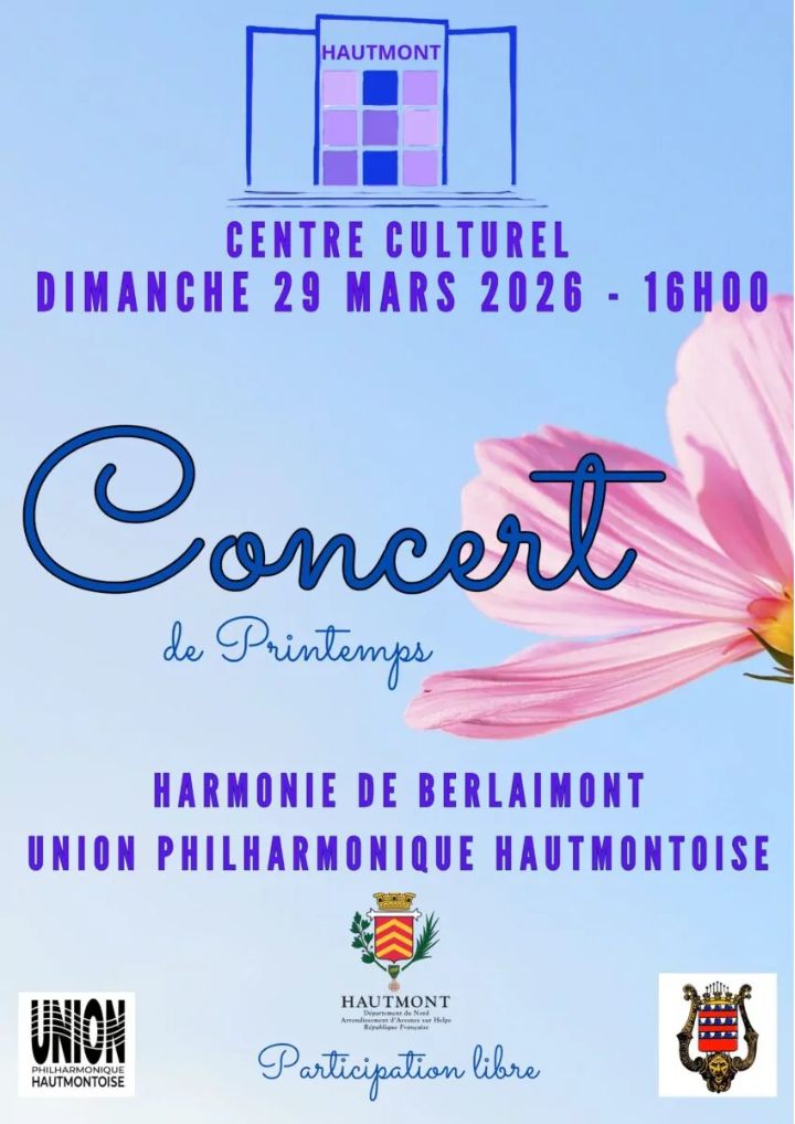 Le dimanche 29 mars, venez assister au concert de Printemps par l'orchestre de l'Union Philarmonique Hautmontoise et l’Harmonie de Berlaimont.