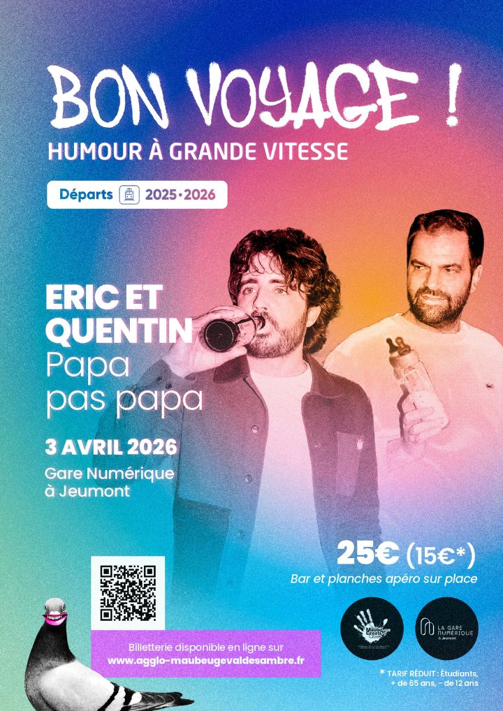 Venez assister au spectacle d'Éric et Quentin le 3 avril à 20 h à la Gare Numérique de Jeumont.