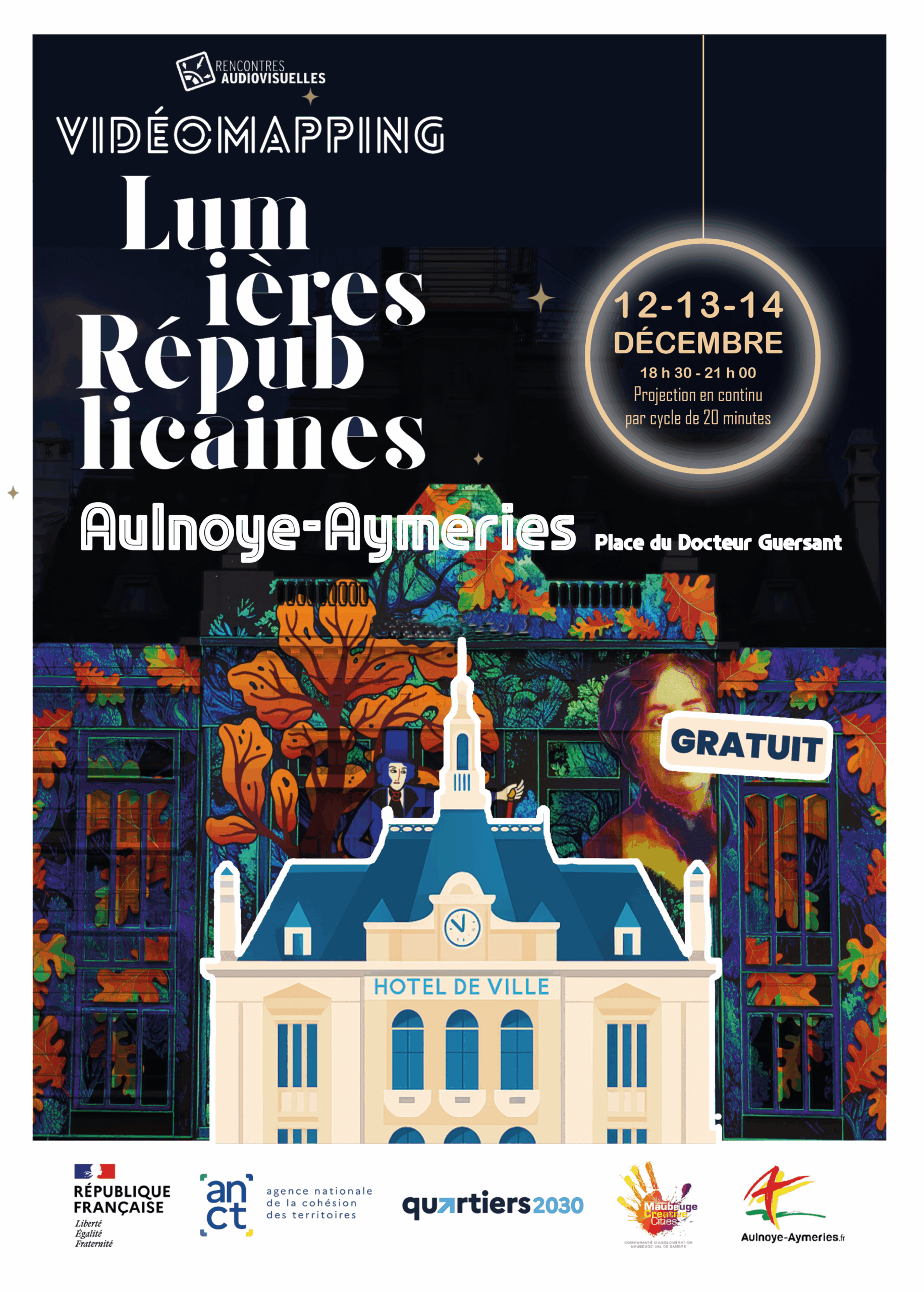 Rendez-vous les 12, 13 & 14 Décembre 2025, de 18:30 à 21:00 sur la Place du Docteur Guersant à Aulnoye-Aymeries, pour une projection architecturale sur les bâtiments en continu (par cycle de 20 minutes) qui créait une immersion captivante dans l'œuvre.
