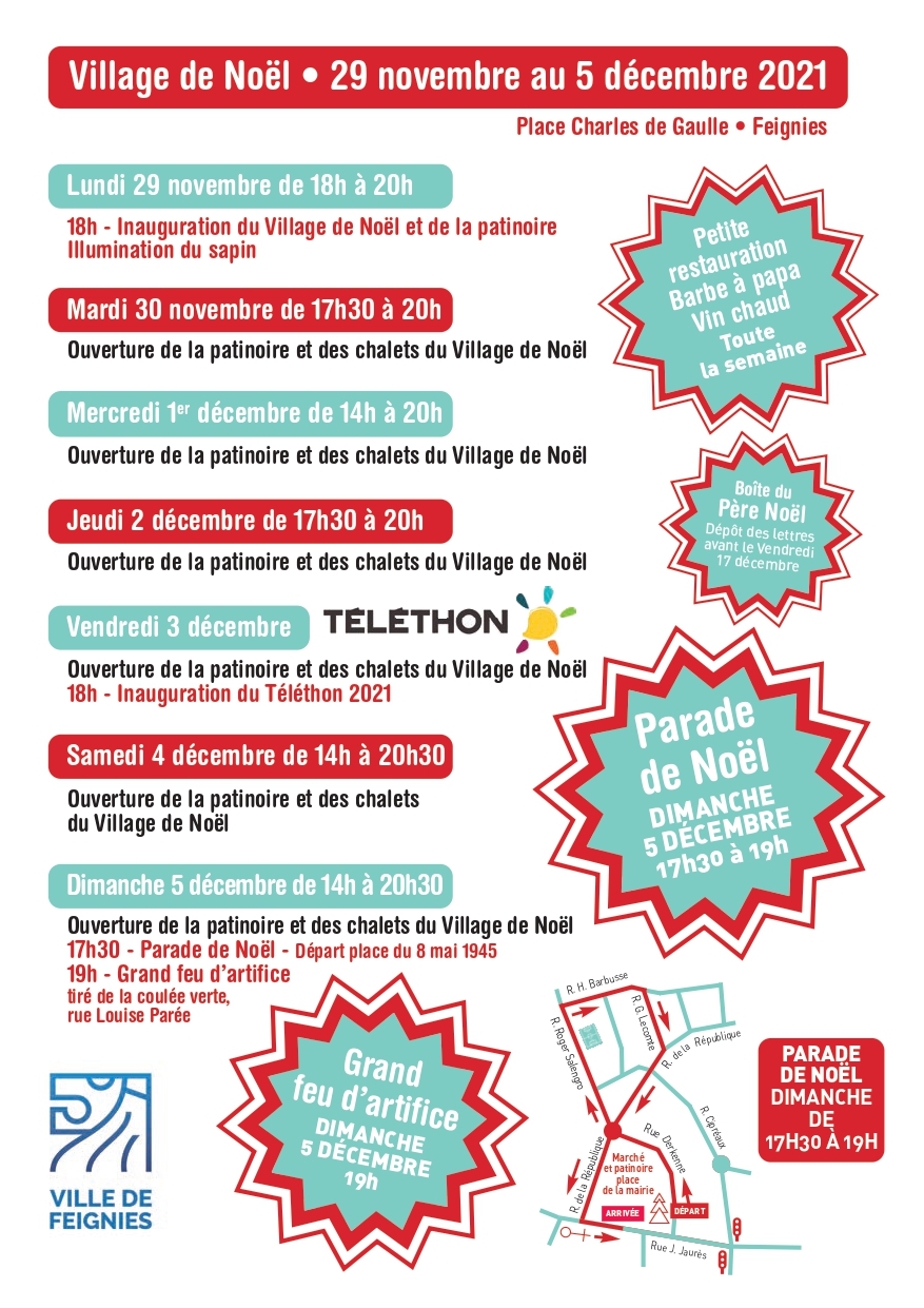 Dimanche 5 décembre, la parade de Noël prendra place à 17h30 et le feu d’artifice à 19h, tiré de la coulée verte dans la rue Louise Parée.