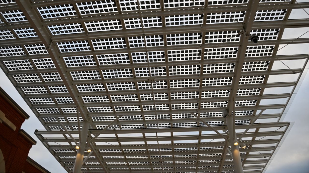 - une halle voyageurs équipée d’une verrière photovoltaïque de 180 panneaux (42 MWh/an) ;